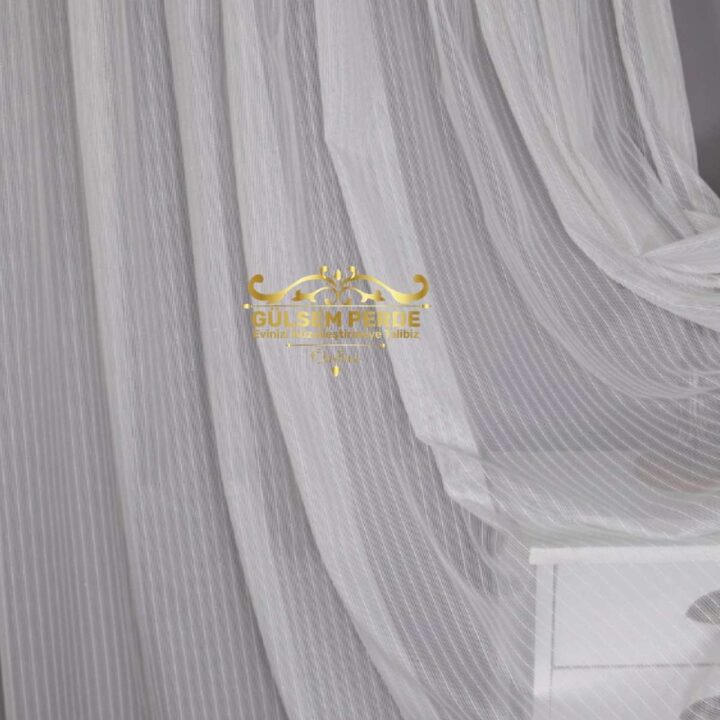 Brillant Zincir Çizgili Ekru Tül Perde – Kurşunlu, Ütü İstemez Ağır Gramajlı Tül