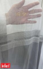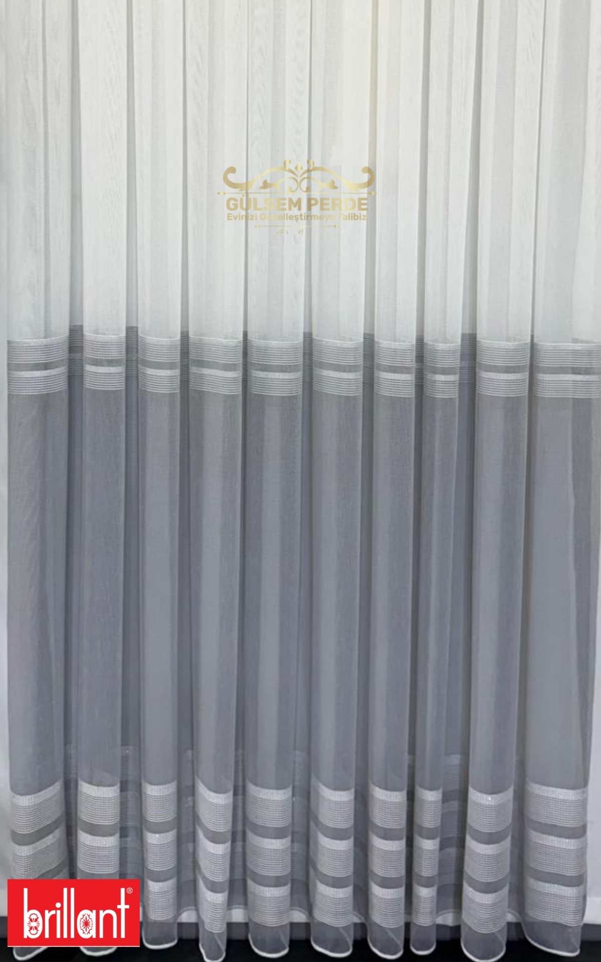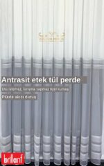 Alt kısmındaki antrasit etek detayı ile klasik tül perdelerden ayrılan bu özel model, yaşam alanlarınıza modern ve zarif bir dokunuş kazandırır.