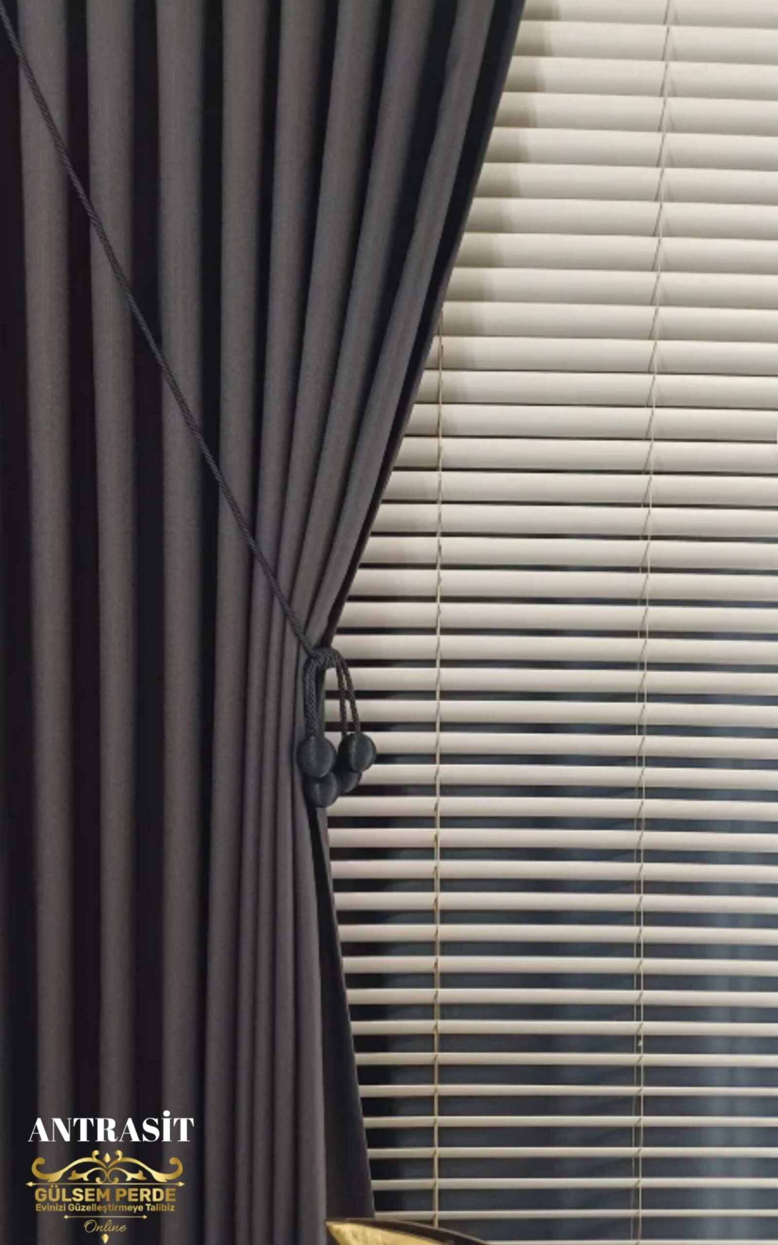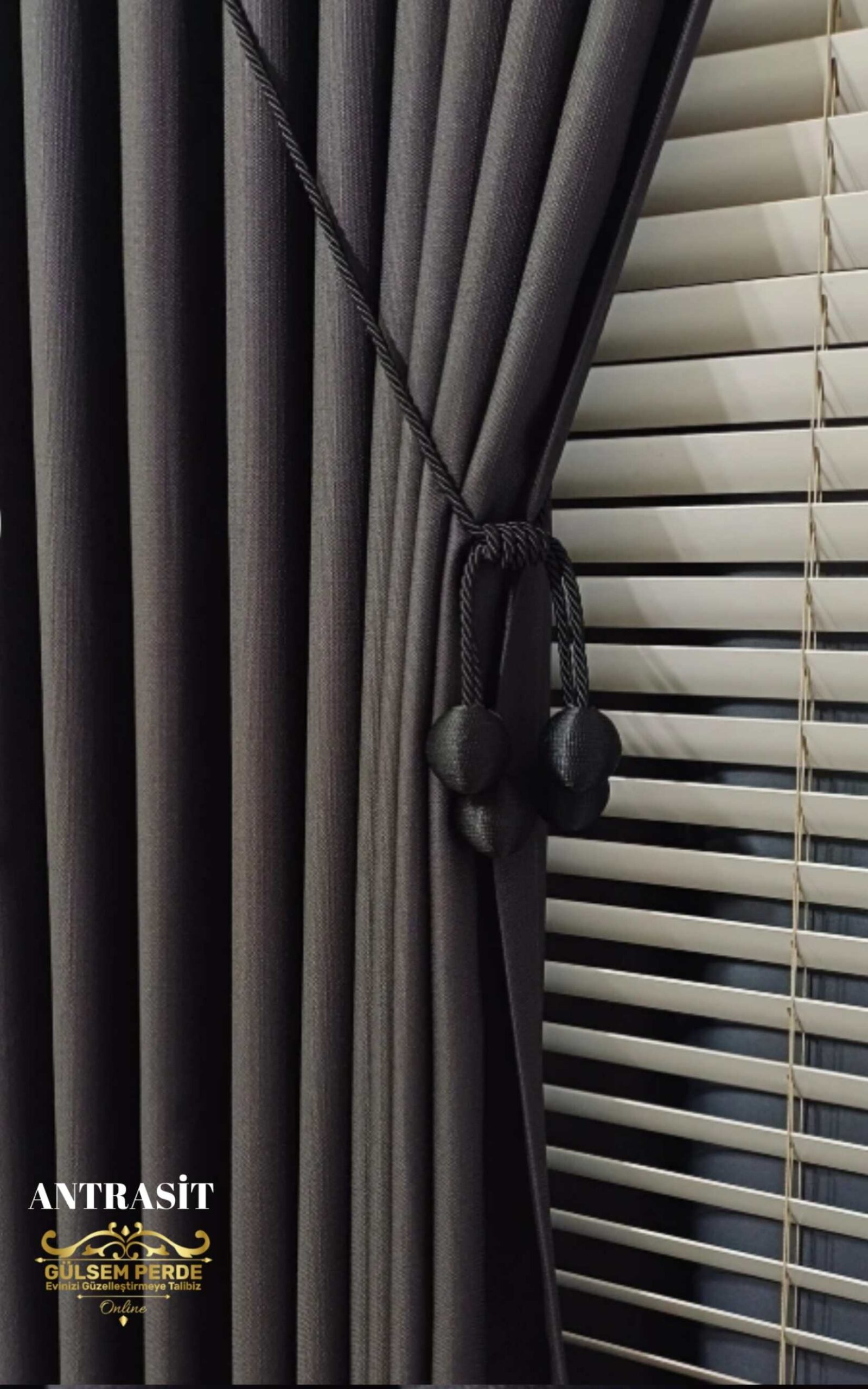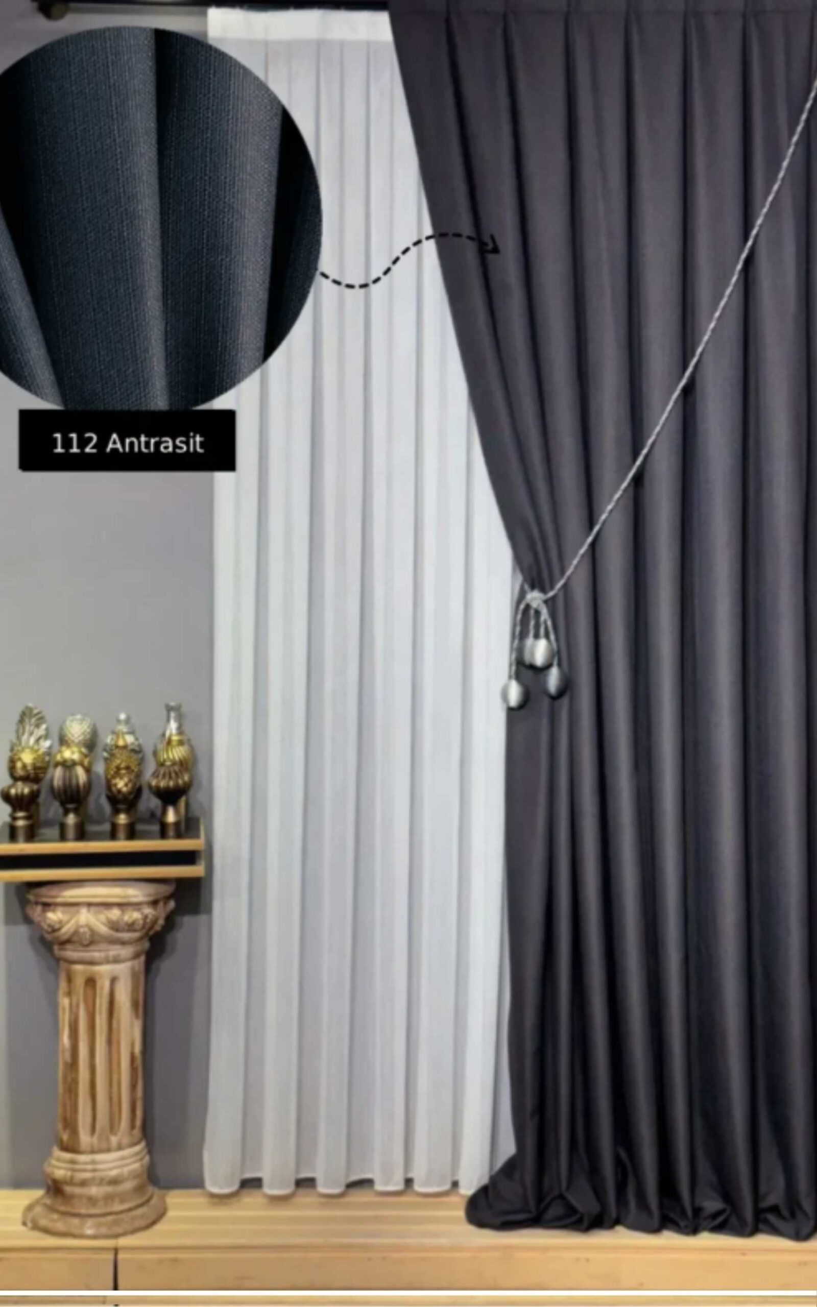 Brillant Antrasit Renk Keten Fon Perde – Modern Dekoratif Fon Perde