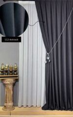 Brillant Antrasit Renk Keten Fon Perde, modern ve şık görünümü ile pencerelerinize zarif bir dokunuş kazandırır. Keten dokulu kumaşı sayesinde tok ve estetik bir duruş sağlayarak dekorasyonunuza uyum sağlar.