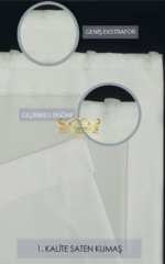 Güneşe dayanıklı ve uzun ömürlü saten güneşliğimiz, kırışmaya karşı dirençli olup ütü gerektirmez. Şık ve kullanışlı yapısıyla yaşam alanlarınıza zarif bir dokunuş katarken, pratik kullanımıyla da konfor sağlar.