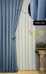 Brillant İndigo Mavi Fon Perde – Keten Dokulu Modern Fon