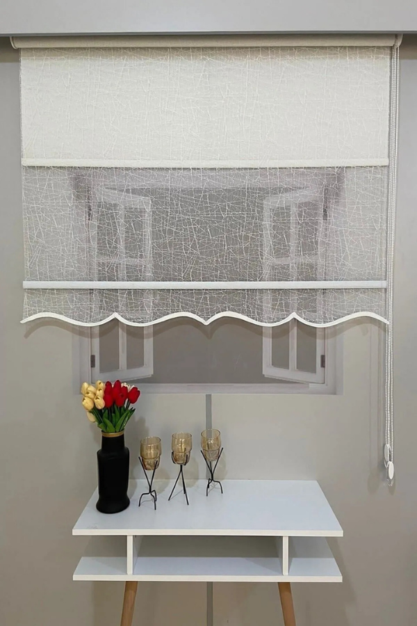 Altta bulunan keten güneşlik storu kaldırdığınızda, tül stor sayesinde ortam daha aydınlık ve ferah hale gelir. Stor perdeyi tamamen indirdiğinizde ise iç mekanın görünmesini engelleyerek mahremiyet sağlar. Üstelik tül storun da ayrı bir zinciri bulunduğu için her iki perdenin yüksekliğini pencerenize göre dilediğiniz şekilde ayarlayabilirsiniz.