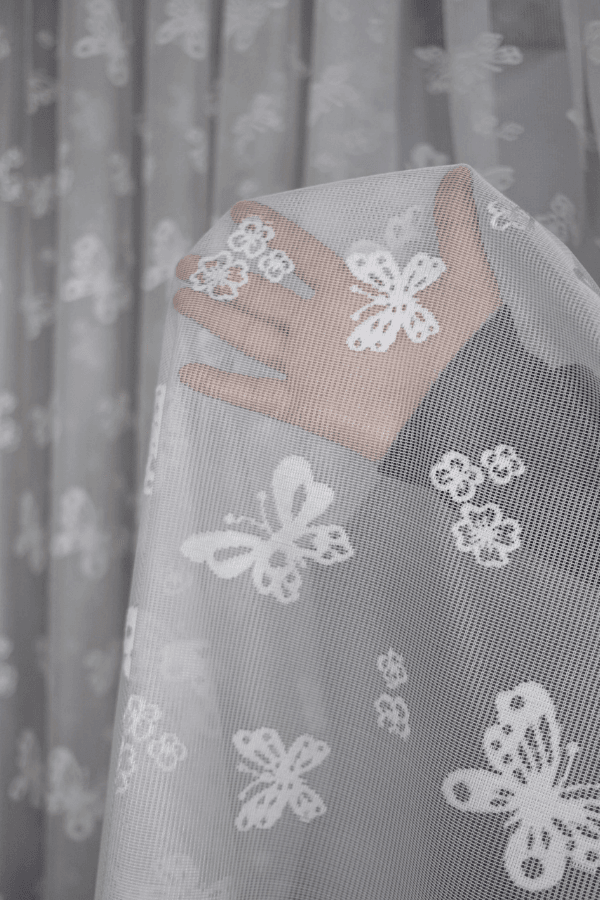 kelebek desenli tül perde