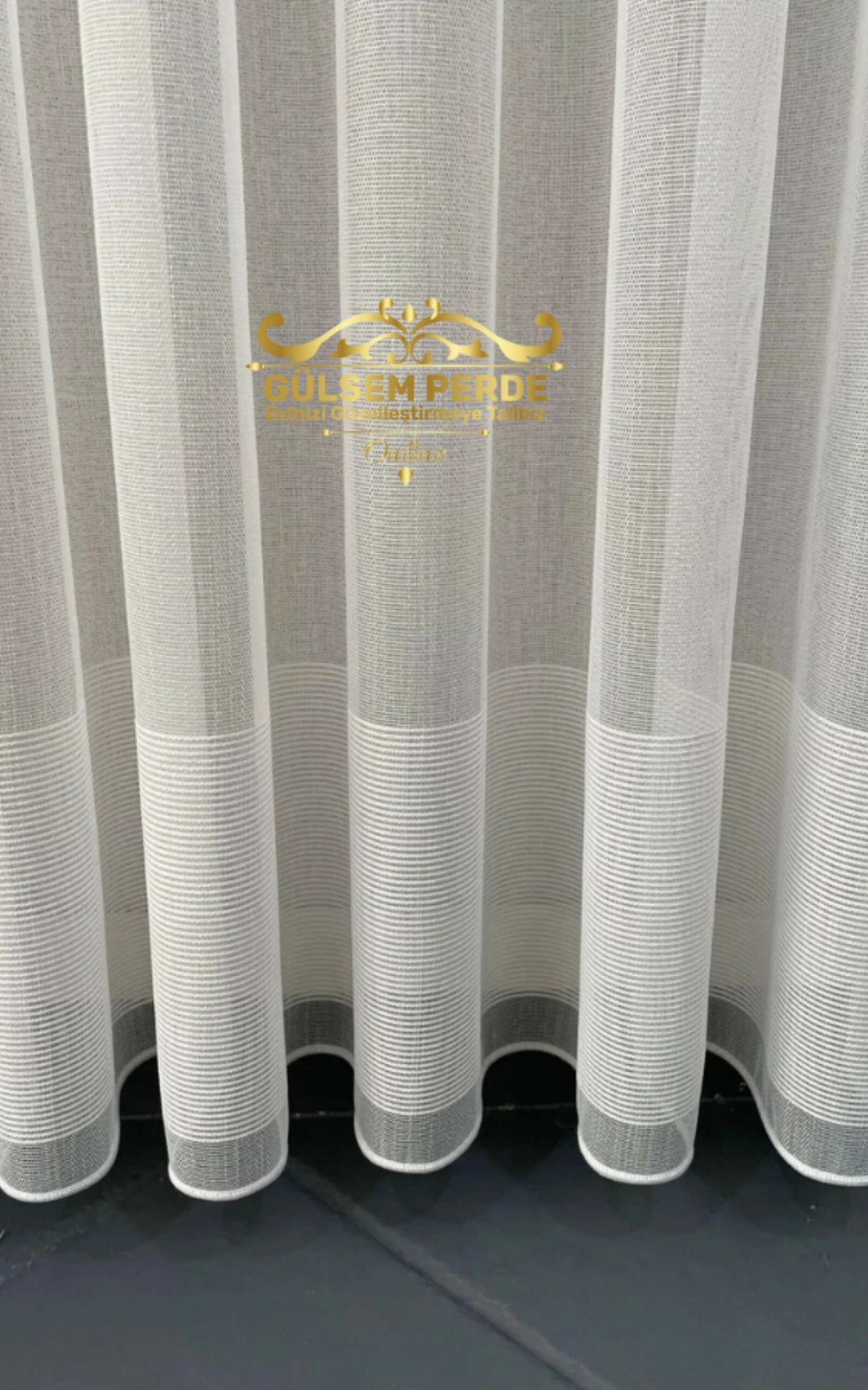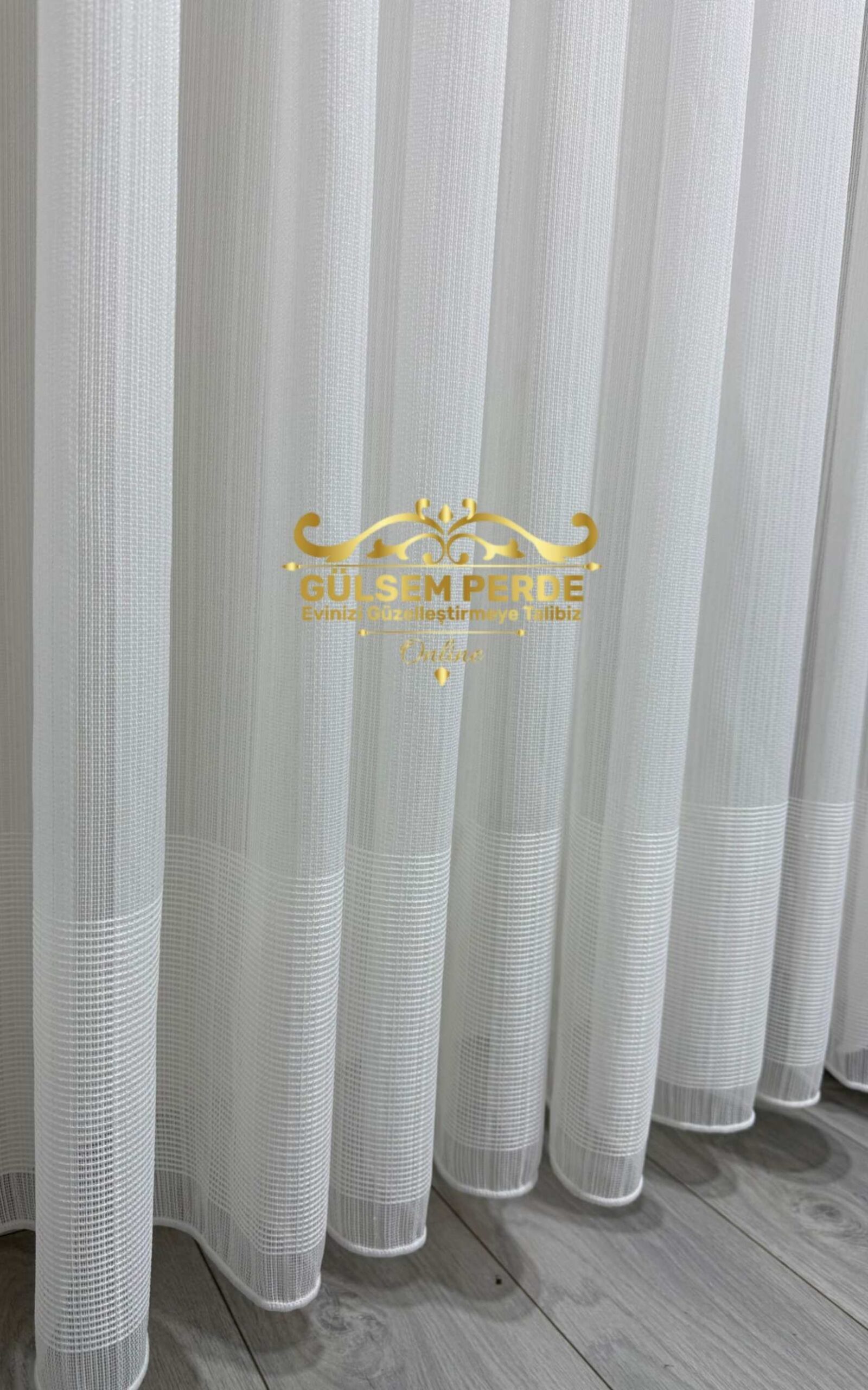 Taç Alt Etek Bantlı Ekru Tül Perde – Kurşunlu, Ütü İstemez