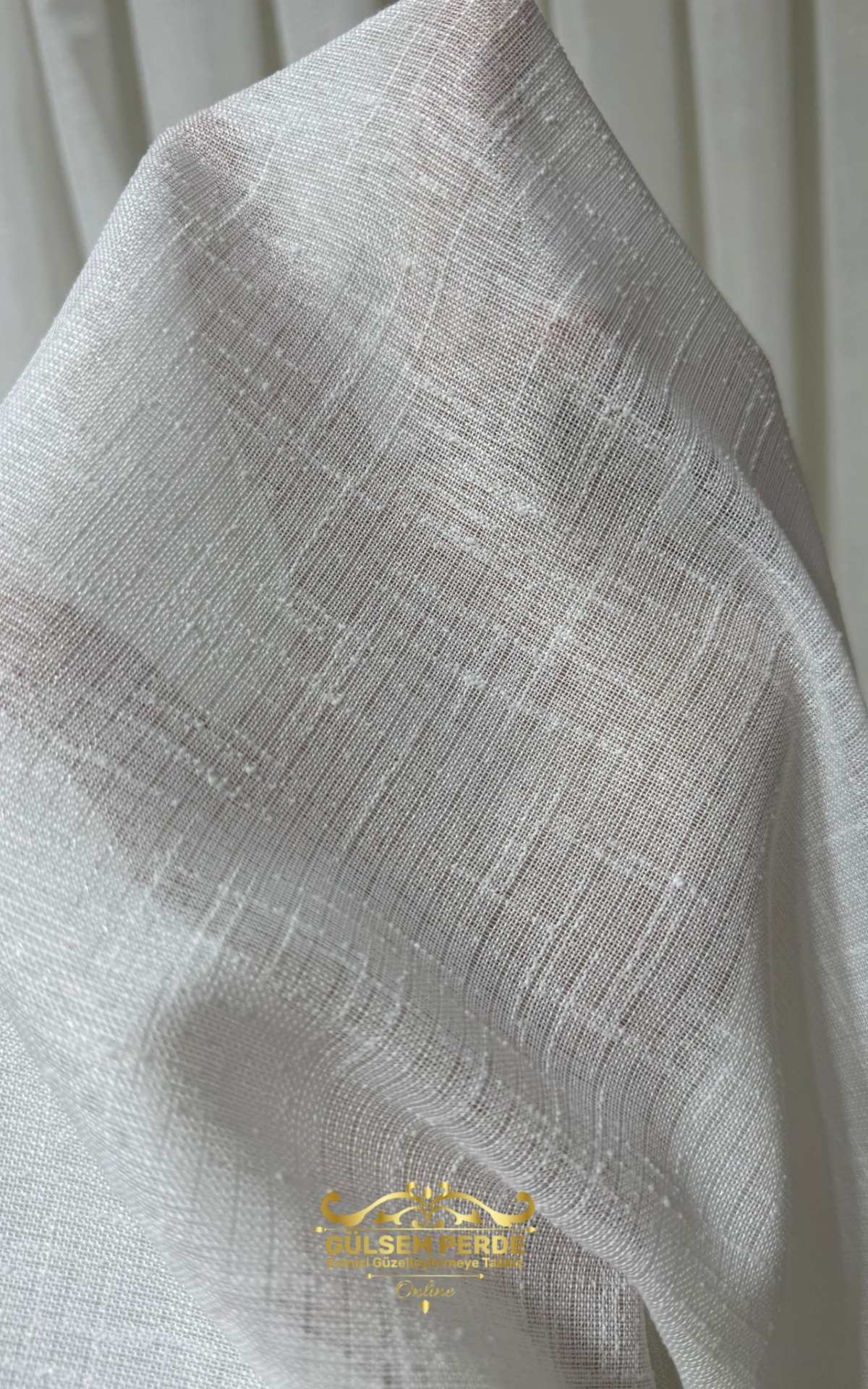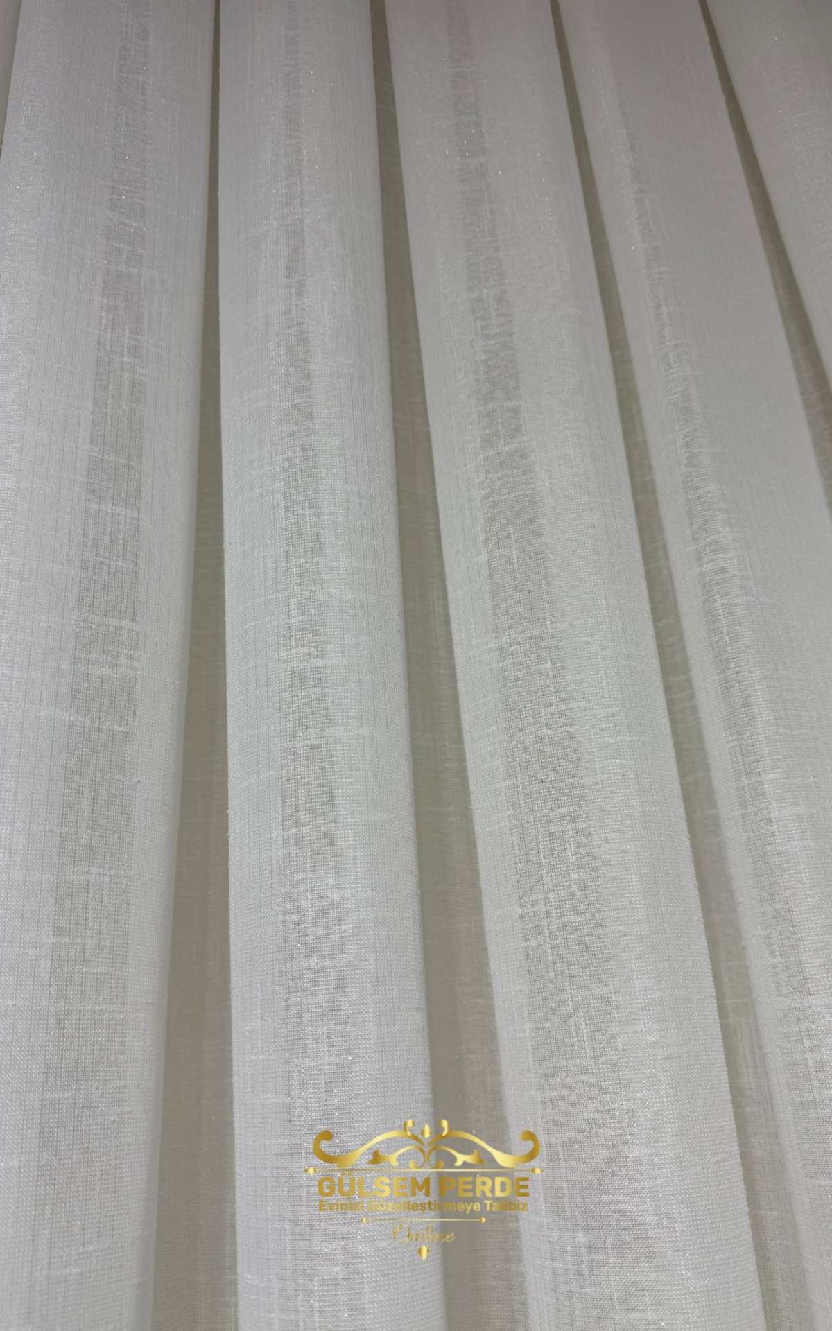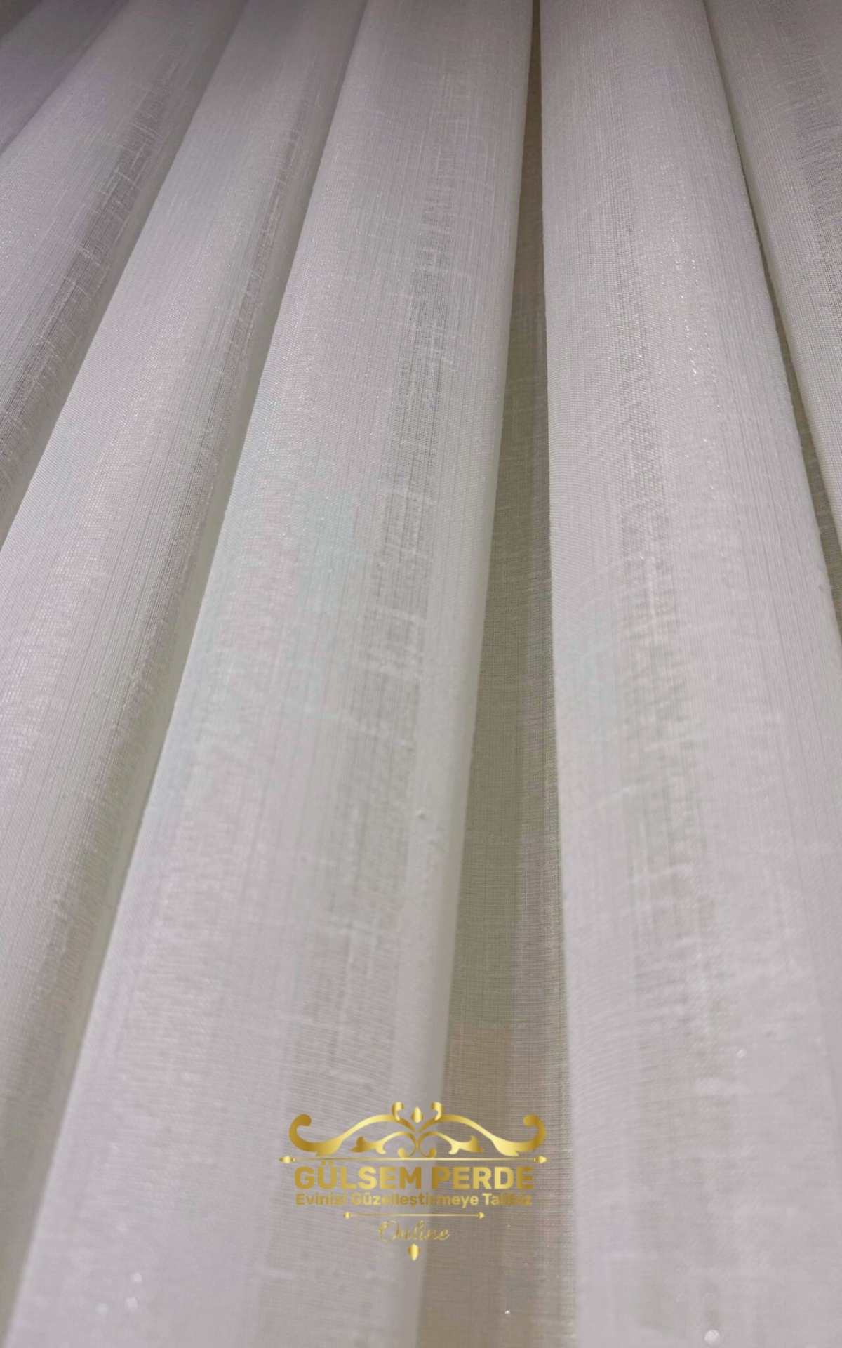 Taç Kalın Keten Dokulu Ekru Tül Perde – Hafif Simli, Ütü İstemez, Modern Tasarım
