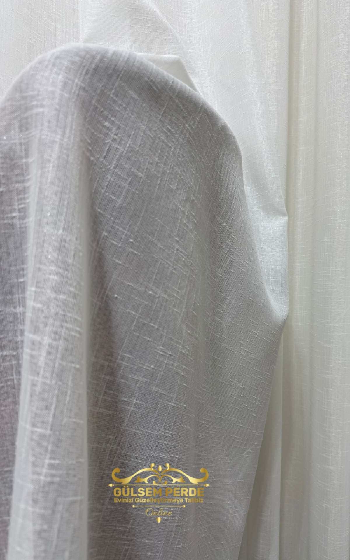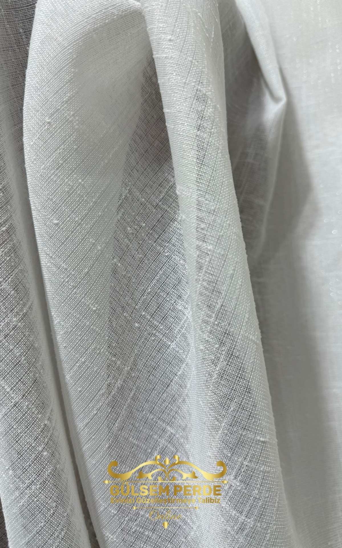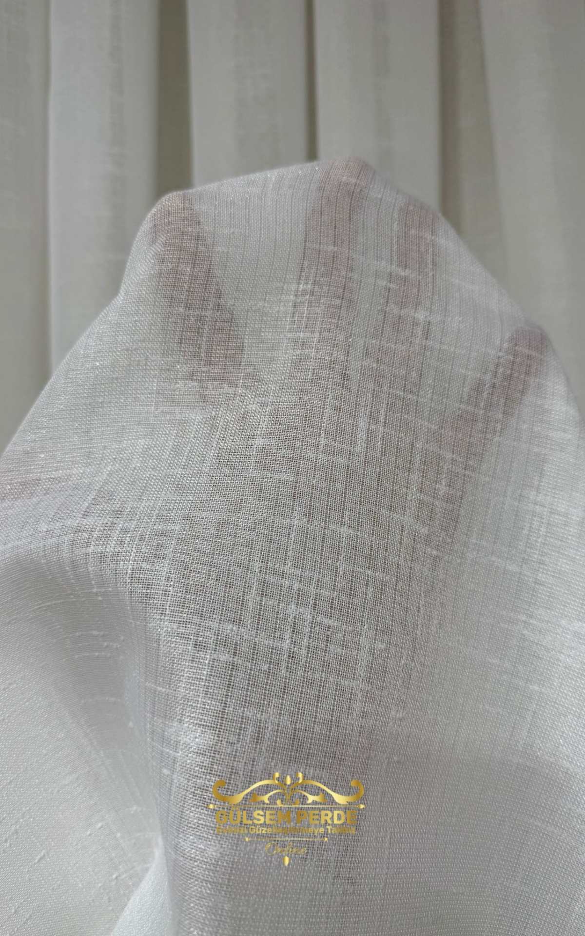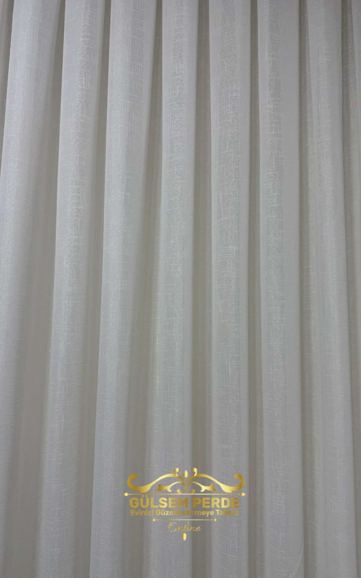 Taç Kalın Keten Dokulu Ekru Tül Perde – Hafif Simli, Ütü İstemez, Modern Tasarım